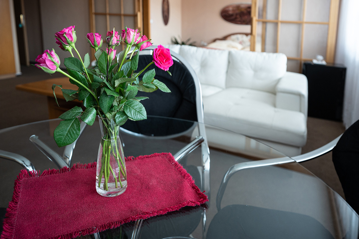 sypialnia z łóżkiem małżeńskim lub 2 pojedynczymi łóżkami, salon z sofą, łazienka z wanną z hydromasażem