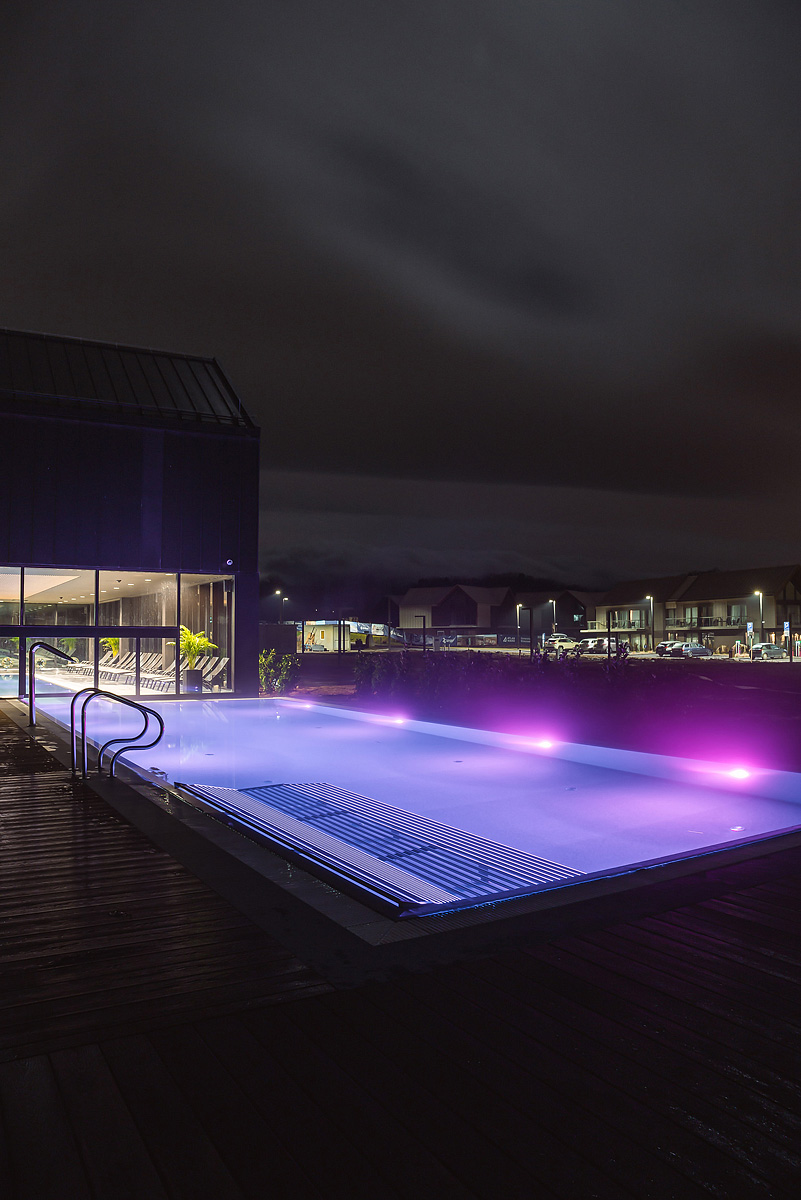 baseny zewnętrzne i wewnętrzne z wodą termalną 34-40 C, brodzik, jacuzzi, kompleks saun
