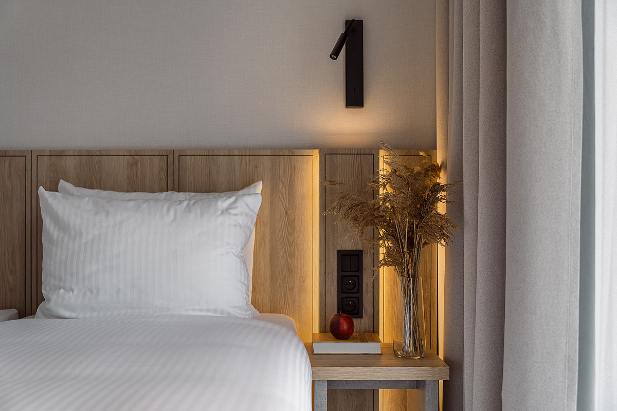 TV sat, telefon, suszarka do włosów, czajnik do kawy i herbaty, wi-fi w typologii Superior 2/3/4 oraz dodatkowo kuchnia z lodówką, kawowar (tylko w typologii Junior Standard 2/3/4 B)
