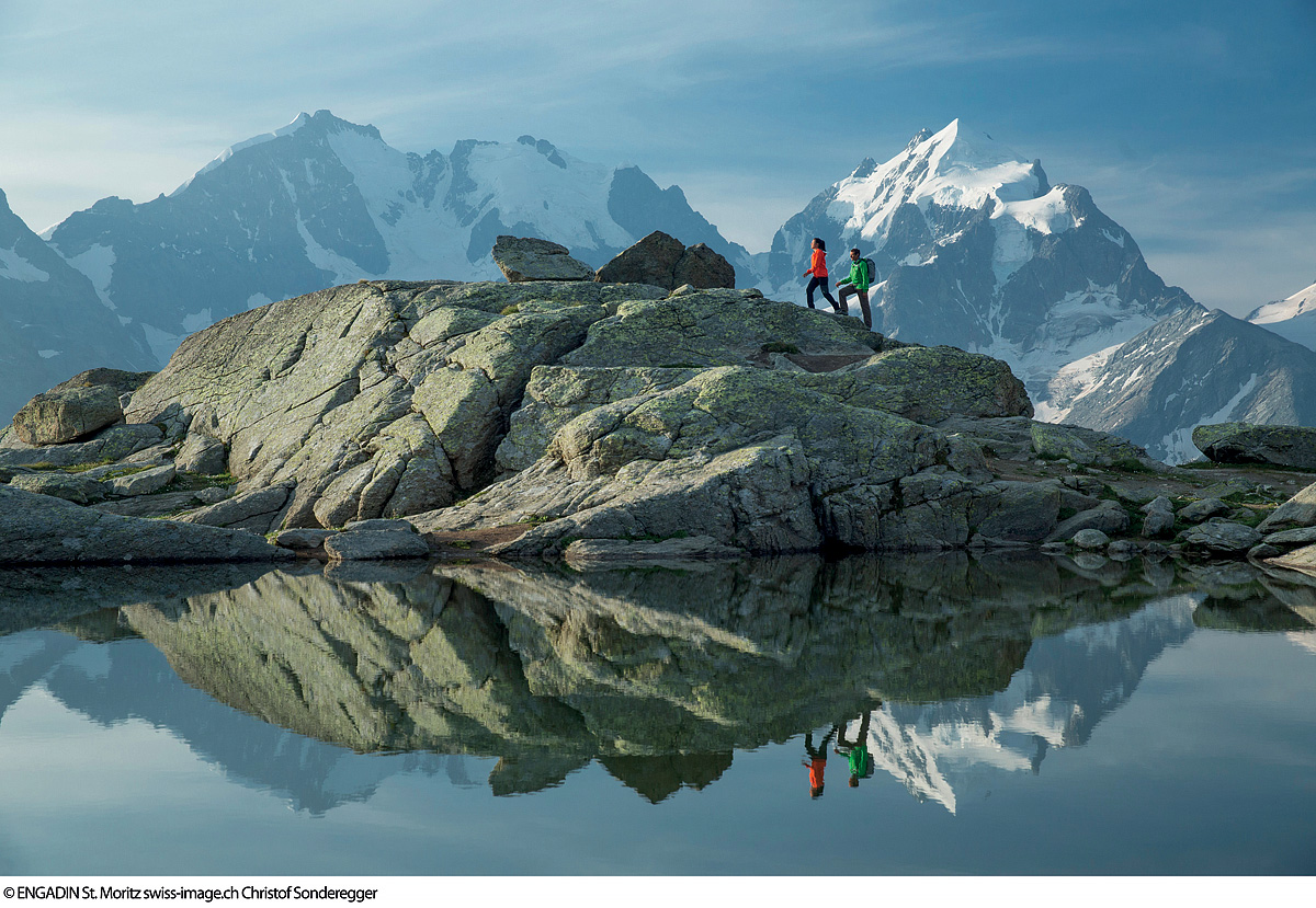 Najwyższym szczytem jest Piz Bernina, który ze swoimi 4.038 m n.p.m. jest także najwyższym szczytem Alp Wschodnich. W Gryzonii, najwyższym szwajcarskim kantonie, swoje źródła mają rzeki Ren i Inn, a wśród licznych dużych lodowców jest także wiele takich, po których można jeździć na nartach (tylko zimą, nie przez cały rok). W regionie Engadyny znajduje się jedyny w Szwajcarii park narodowy o powierzchni 172 km2. Jest to najstarszy park narodowy w Europie, założony w 1914 roku. Ten magiczny i tajemniczy kanton ma wiele do zaoferowania nawet latem. Prawie wszystkie mikroregiony w Gryzonii oferują w cenie noclegu (zwykle od 2 nocy) letnią kartę turystyczną, która uprawnia do całkowicie bezpłatnego korzystania z kolejek linowych (a często i innych usług).