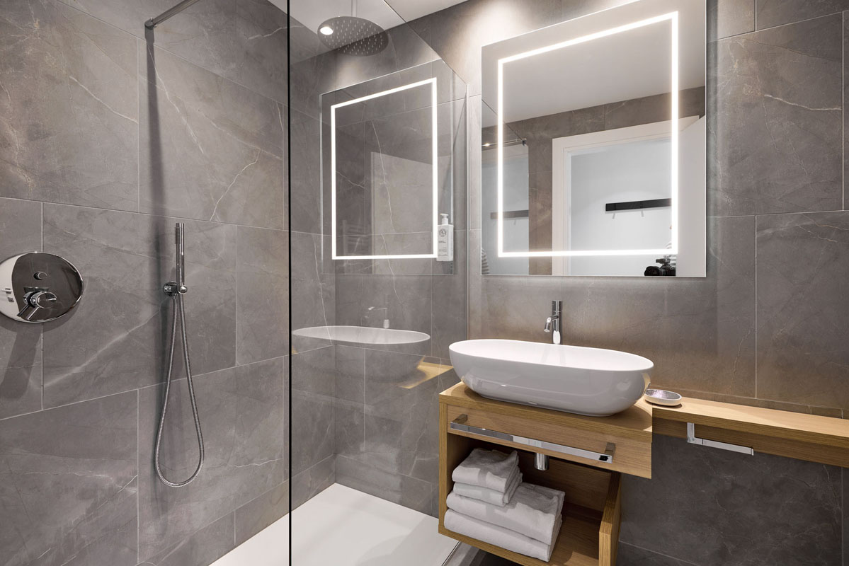 pokój z łóżkiem małżeńskim lub 2 łóżkami pojedynczymi, 3. i 4. łóżkiem w formie rozkładanej sofy, łazienka z prysznicem, zazwyczaj balkon lub taras, widok na jezioro; maksymalna liczba osób w pokoju to 2 osoby dorosłe i 2 dzieci poniżej 14 lat