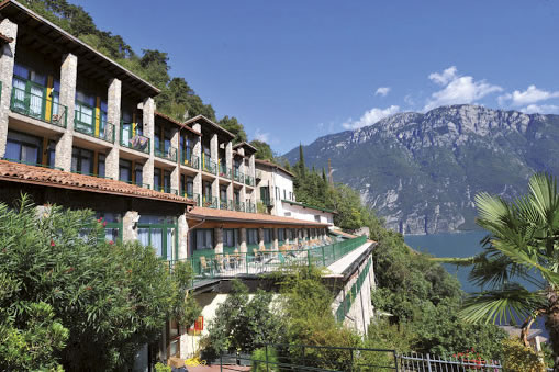 recepcja, bar, 2x restauracja, sala wspólna z kominkiem i muzyką na żywo (2x w tygodniu) lub muzyką z odtwarzacza, pizzeroe / bar z widokiem na jezioro, częścią pizzeri jest wewnętrzny ogrzewany basen, ogród, winda, przechowalnia rowerów, minimarket, wydzielony parking, domowe zwierzęta nie są akceptowane