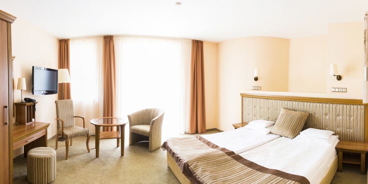 ok. 20 m² - pokój z 1 lub 2 łóżkami, ewentualnie łóżkiem małżeńskim, łazienka; maksymalna liczba osób 1 dorosły i 1 dziecko poniżej 18 lat (część hotelowa 3*)