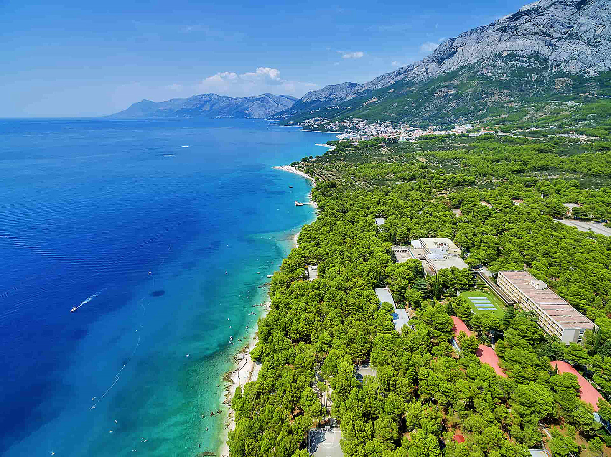 Baška Voda, centrum - 2 km, plaża/ kamienista i z płytami betonowymi i stopniowym zejściem do morza - 100 m