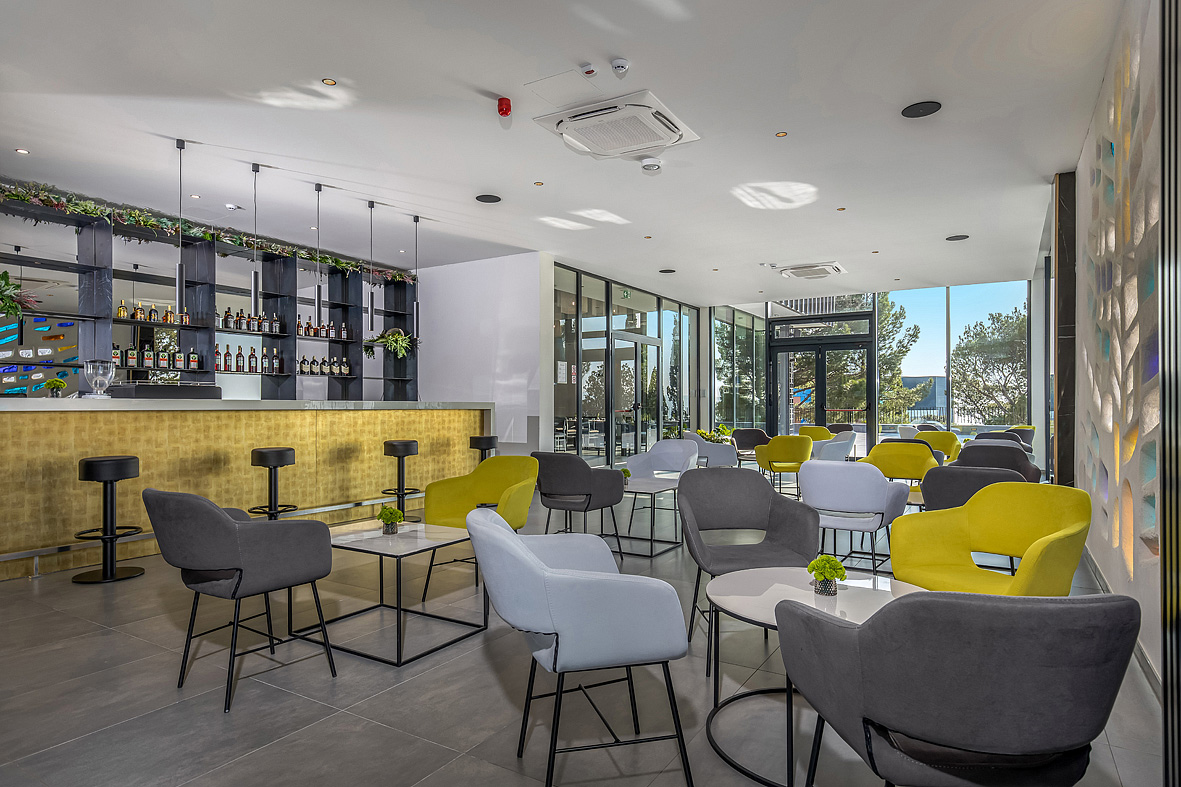 kompleks składający się z głównego budynku hotelowego, 13 odrębnych pawilonów z pokojami i dalszym zapleczem. Plaża jest oddalona ok 450 m. Wnętrza sa ozdobione obrazami znanych chorwackich malarzy. W cenie pobytu jest wyzywienie HB z napojami do kolacji. Do dyspozycji są 2 odkryte baseny a wi-fi jest bezpłatne.