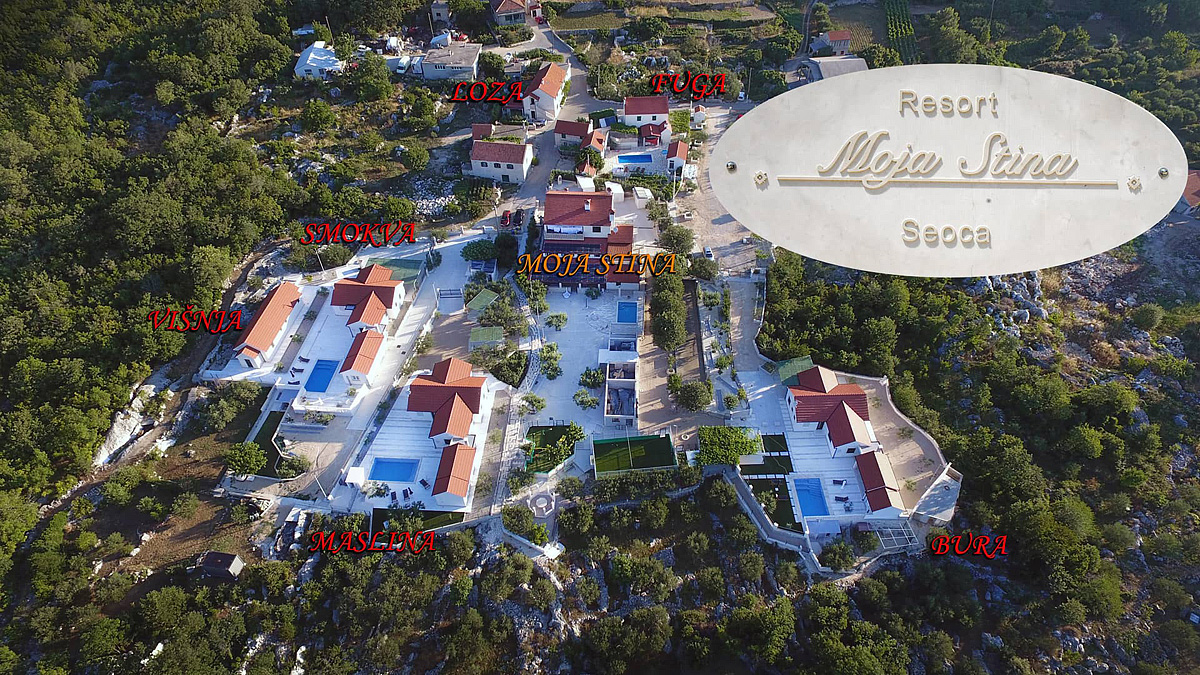 Resort Maja Stina to luksusowa oaza spokoju i relaksu, położona w malowniczej miejscowości Seoca, w sercu Dalmacji. Ośrodek ten oferuje pięć nowoczesnych willi, które gwarantują maksymalną prywatność i komfort. Każda willa wyposażona jest w prywatny basen, przestronne tarasy z zapierającymi dech w piersiach widokami na góry i przyrodę oraz w pełni wyposażoną kuchnię dla Twojej wygody. Ośrodek jest idealnym wyborem dla rodzin, przyjaciół lub par szukających połączenia relaksu i przygody na łonie natury. Mimo, że ośrodek położony jest w spokojnej okolicy, do centrum Omiš można dojechać w zaledwie 25 minut, co zapewnia łatwy dostęp do plaż, restauracji, sklepów i zabytków kultury.