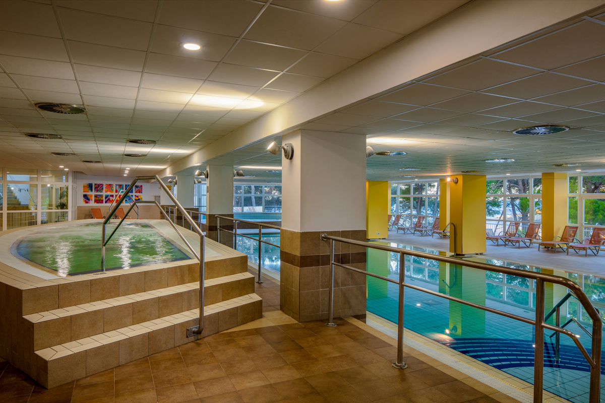 recepcja/ kantor, bankomat, winda, 3x restauracja á la carte, aperitiv bar, bar przy basenie, minimarket, centrum konferencyjne, taras, wydzielony parking hotelowy*, sala zabaw dla dzieci w sąsiednim hotelu Vespera, stacja ładowania elektroaut*, wi-fi