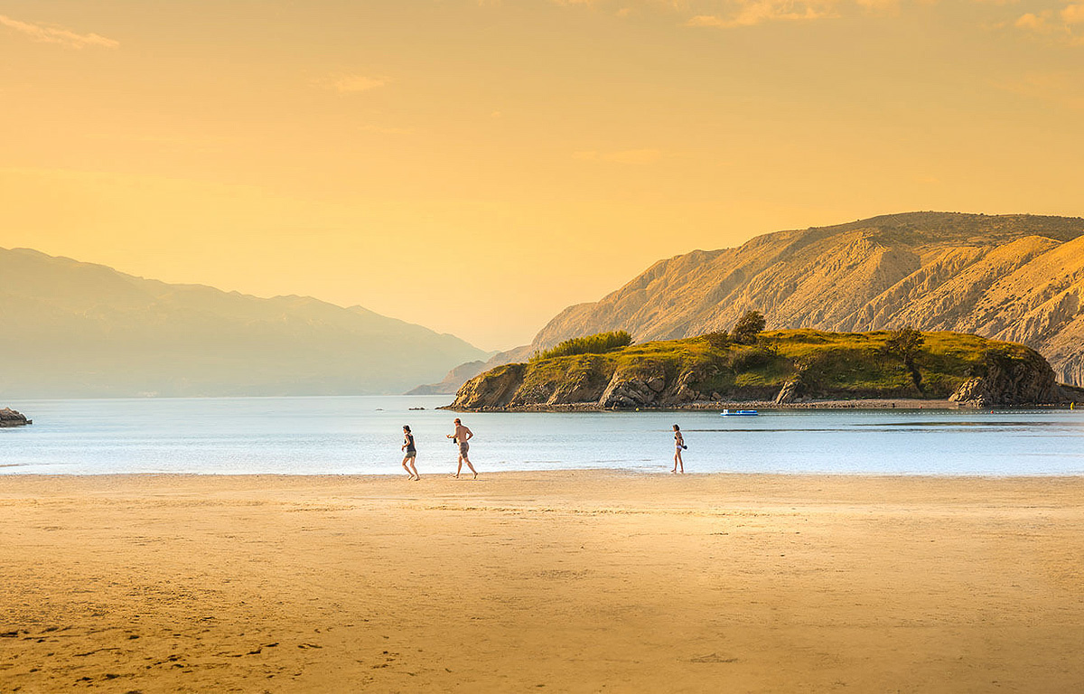 Lopar, wyspa Rab / Kvarner, szeroka piaszczysta plaża (Rajska plaža) z płytkim morzem (stopniowe wejście), odpowiednia szczególnie dla dzieci - 100 m, sklep - 300 m, sklepy i bary - 150 m