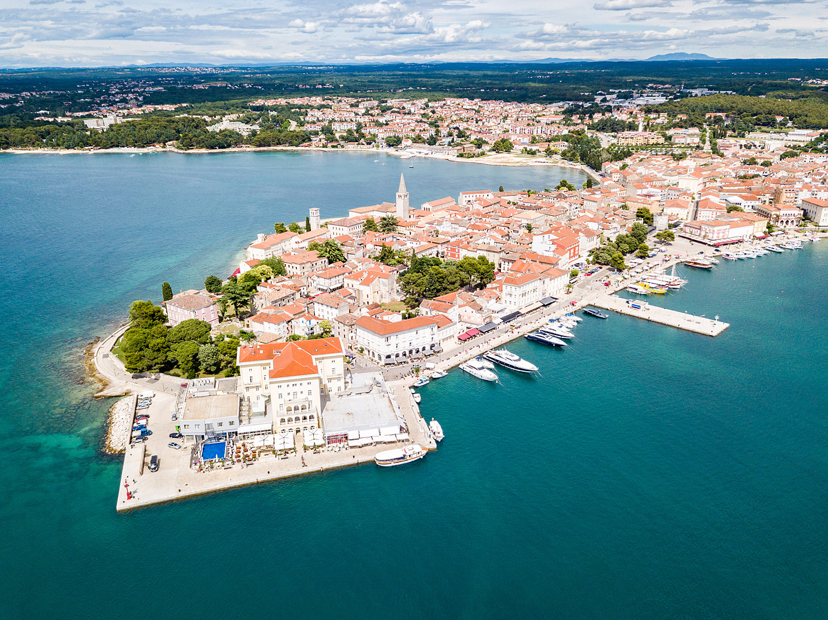 Poreč to tętniące życiem miasto z wieloma hotelami, rozrywką i bogatą ofertą sportową. Kompleks Bazyliki Eufrazjusza z pięknymi mozaikami (pod auspicjami UNESCO), wyróżnia się na tle tutejszych rzymskich zabytków m.in. pozostałości Forum i Świątyni Neptuna. Cenne zabytki pozostawili tu również Wenecjanie, którzy odcisnęli trwały ślad na zabudowie centrum miasta.