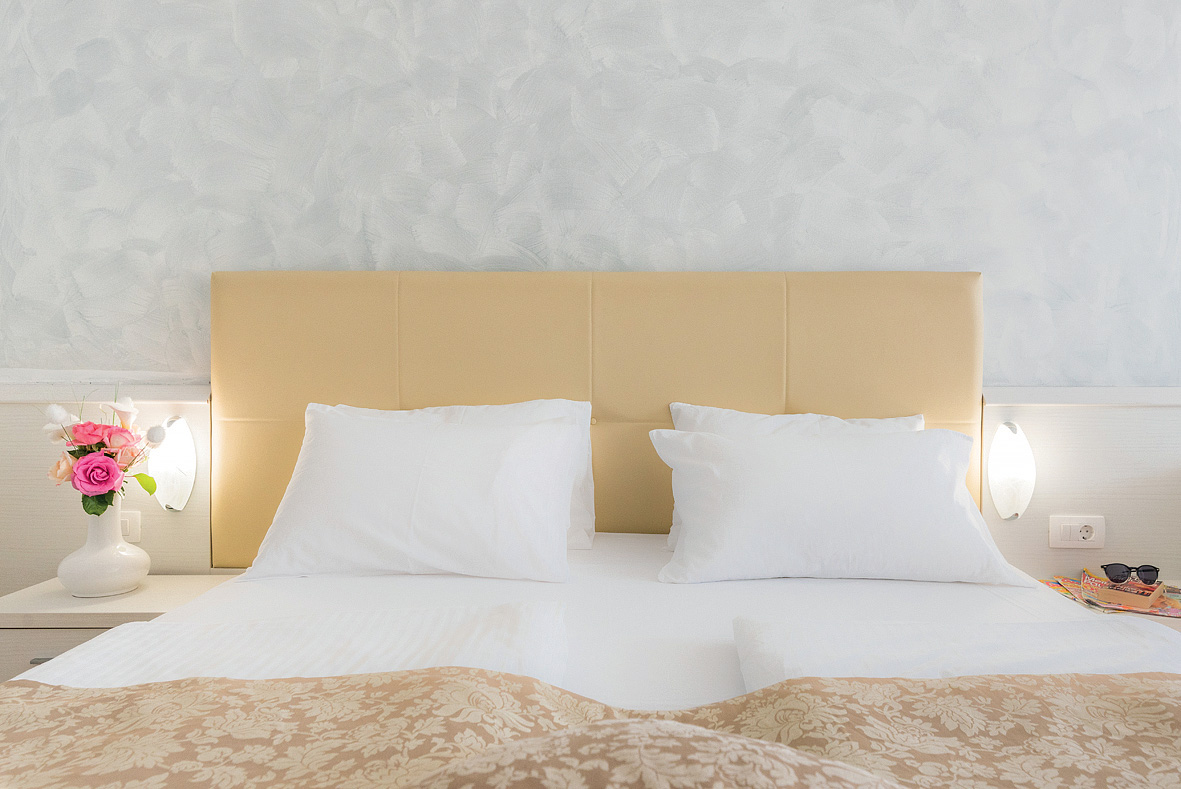 pokój dla 4 osób z łóżkiem małżeńskim lub dwoma oddzielnymi łóżkami, rozkładana kanapa dla 2 dzieci do nieukończonych 18 lat lub jednej osoby dorosłej, łazienka z prysznicem, balkon od strony morza