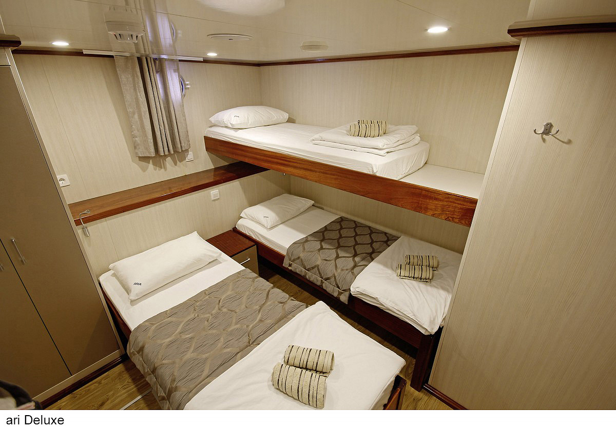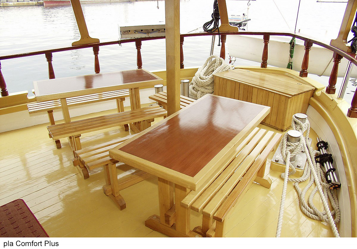 Łodzie kategorii Comfort plus / żaglówki motorowe z drewnianymi lub stalowymi kadłubami, łodzie kategorii Deluxe / luksusowe jachty motorowe ze stalowymi kadłubami, zadaszonym salonem na górnym pokładzie i platformą kąpielową na rufie. Rezerwacji kabiny na pokładzie można dokonać za dodatkową opłatą i wyłącznie po wcześniejszym zgłoszeniu. W kategorii Comfort plus woda z prysznica spływa do odpływu podłogowego, nie jest to kabina prysznicowa i nie jest oddzielona zasłoną.