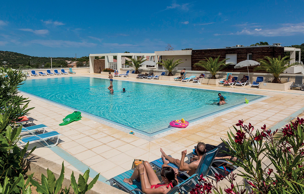 basen zewnętrzny 22 x 10 m z leżakami, brodzik zewnętrzny 5 x 5 m, minigolf, boisko wielofunkcyjne, tor do gry w pétanque