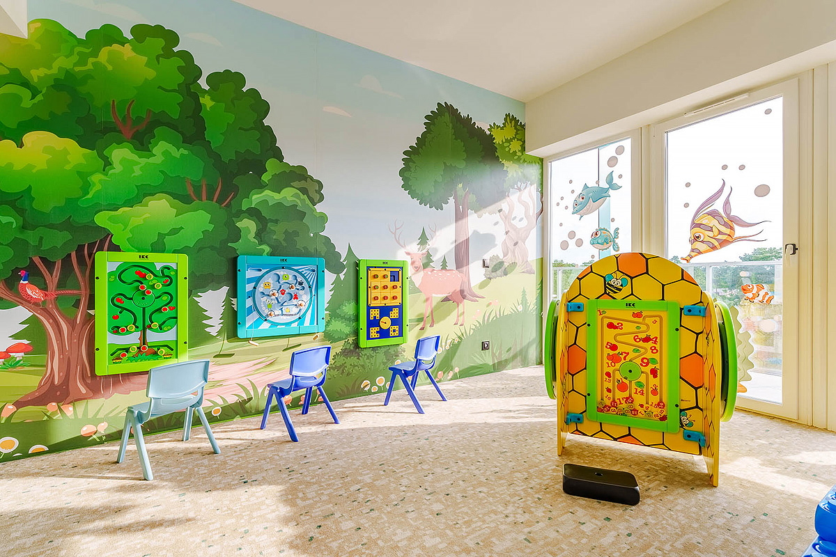 recepcja, lobby, internet wi-fi, klimatyzacja, restauracja dla gości hotelowych, restauracja a la carte, bar, taras słoneczny z miejscami do siedzenia na zewnątrz, leżakami i parasolami, pokój zabaw dla dzieci, plac zabaw na świeżym powietrzu, animatorzy dla dzieci (w okresie szkolnym i wakacyjnym), przechowalnia rowerów, sala konferencyjna z wi-fi, winda, zarezerwowane miejsce parkingowe*