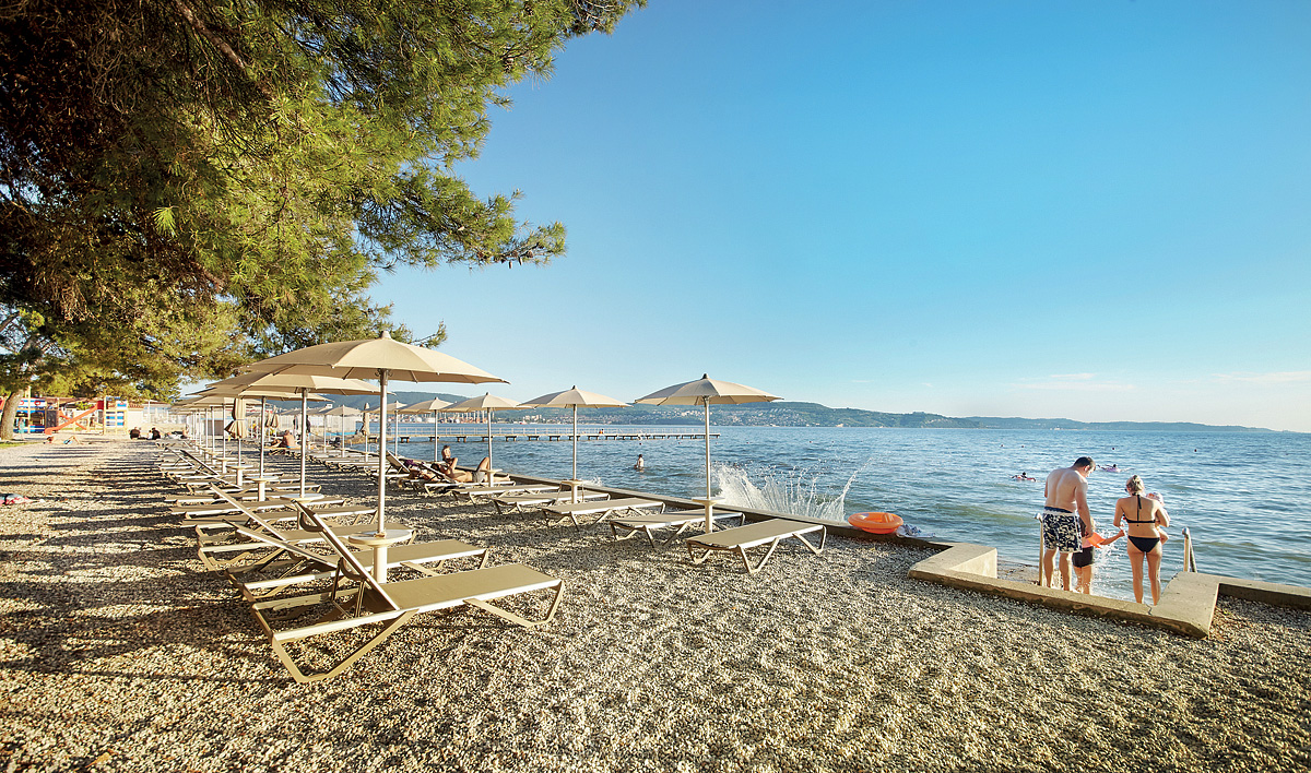 Ankaran, plaża / żwirowa, trawiasta z betonowymi płytami z naturalnym cieniem - do 300 m (w zależności od odległości od apartamentu lub domu mobilnego), połączenie z dalekobieżną trasą rowerową Parenzana - 300 m, przystanek autobusowy - 300 m, międzynarodowy przystanek autobusowy w Portorož - 22 km, port Koper - 7 km, kurort Izola - 14 km, rezerwat przyrody Strunjan - 21 km, kurort wypoczynkowy Portorož - 22 km, zabytkowe miasto Piran - 24 km, pole solne Sočaveljske soline - 24 km, włoski Triest z pałacem Miramare - 24 km, lotnisko w Trieście - 60 km