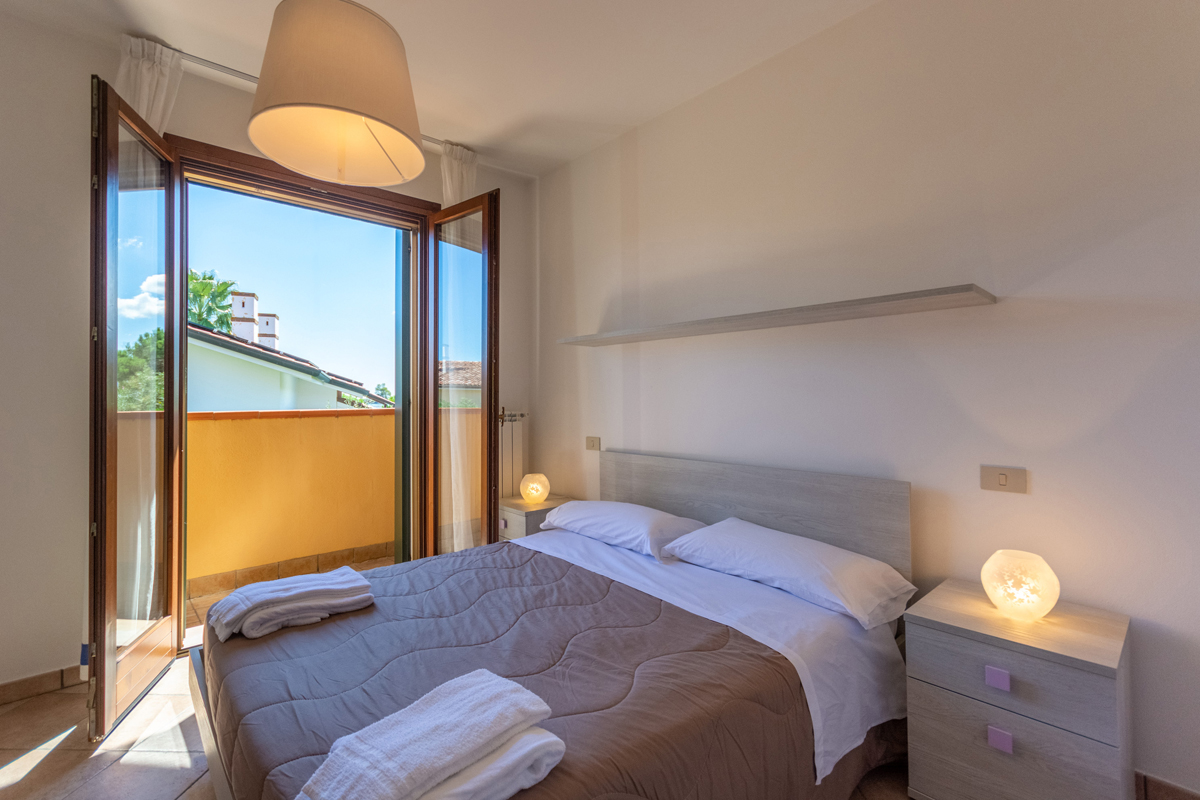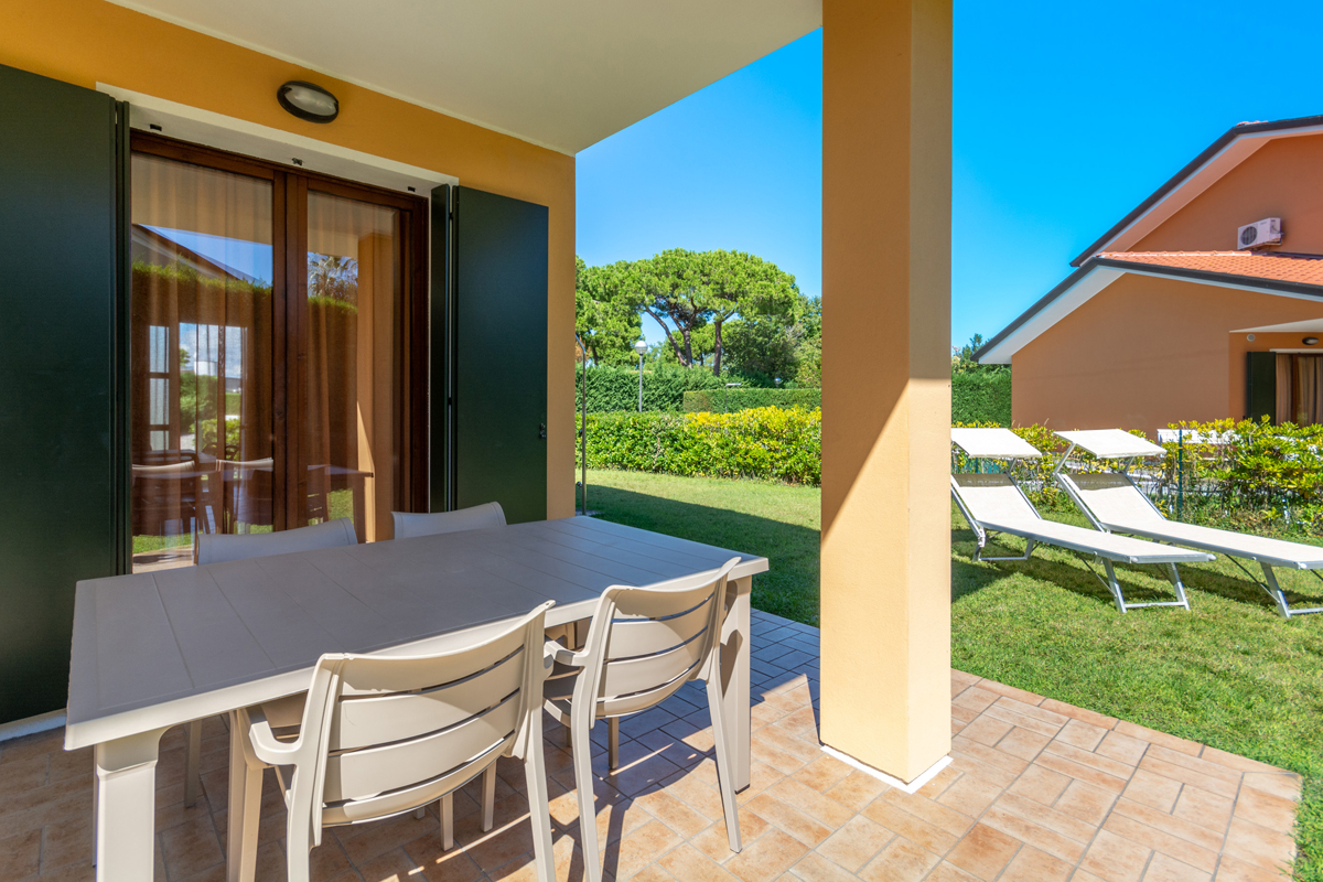 trilo 4 V3 - 80 m² – połowa parterowej willi w Valle da Pesca, w pobliżu ośrodka jeździeckiego; na parterze 1 sypialnia z łóżkiem małżeńskim, salon z aneksem kuchennym, łazienka z prysznicem, weranda z kominkiem zewnętrznym i grillem, ogród; na piętrze 1 sypialnia z 2 łóżkami pojedynczymi, łazienka z prysznicem; 2 miejsca parkingowe przy domu