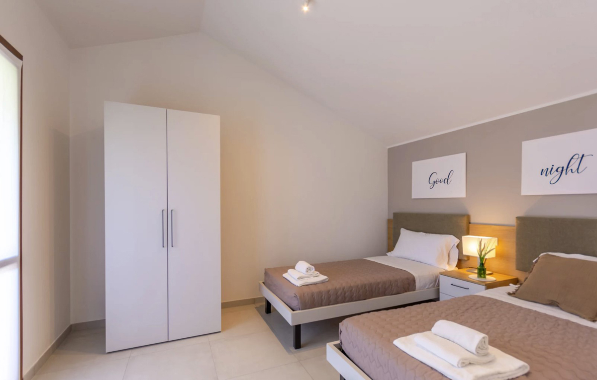 quadri 6 V4P bazén - 100 m² – połowa parterowej willi; parter: 1 sypialnia z łóżkiem małżeńskim, salon z aneksem kuchennym, łazienka z prysznicem, weranda z kominkiem i grillem, ogród z prywatnym basenem; piętro: 1 sypialnia z łóżkiem małżeńskim, 1 sypialnia z 2 łóżkami pojedynczymi lub łóżkiem piętrowym, łazienka z prysznicem; 2 miejsca parkingowe przy domu; na życzenie możliwość dostawki dla 7. osoby*