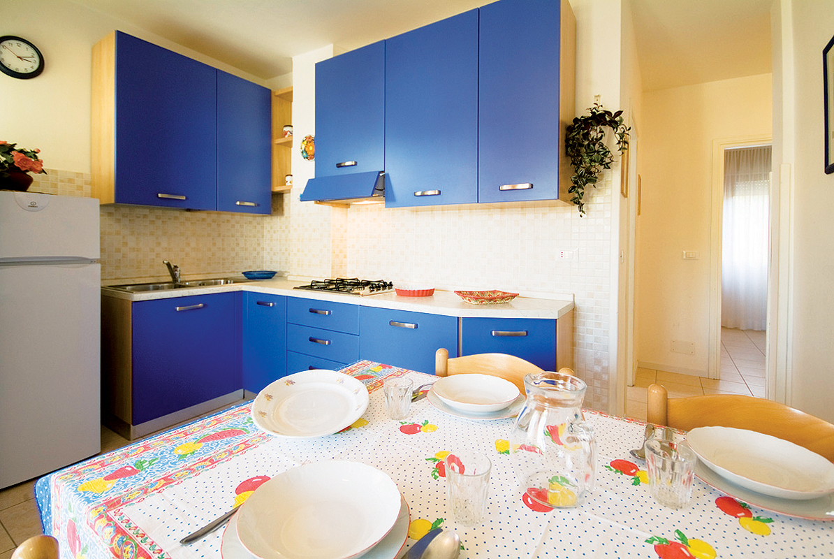 dwa czteropiętrowe domy apartamentowe (Est i Ovest) i dwupiętrowe wille w pierwszej linii od plaży
