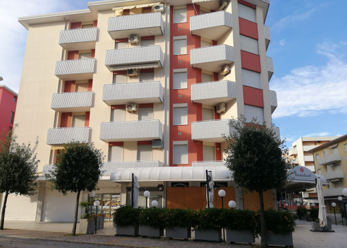 pięciopiętrowy budynek apartamentowy na granicy centralnej części Bibione Spiaggia i spokojnej dzielnicy Lido dei Pini
