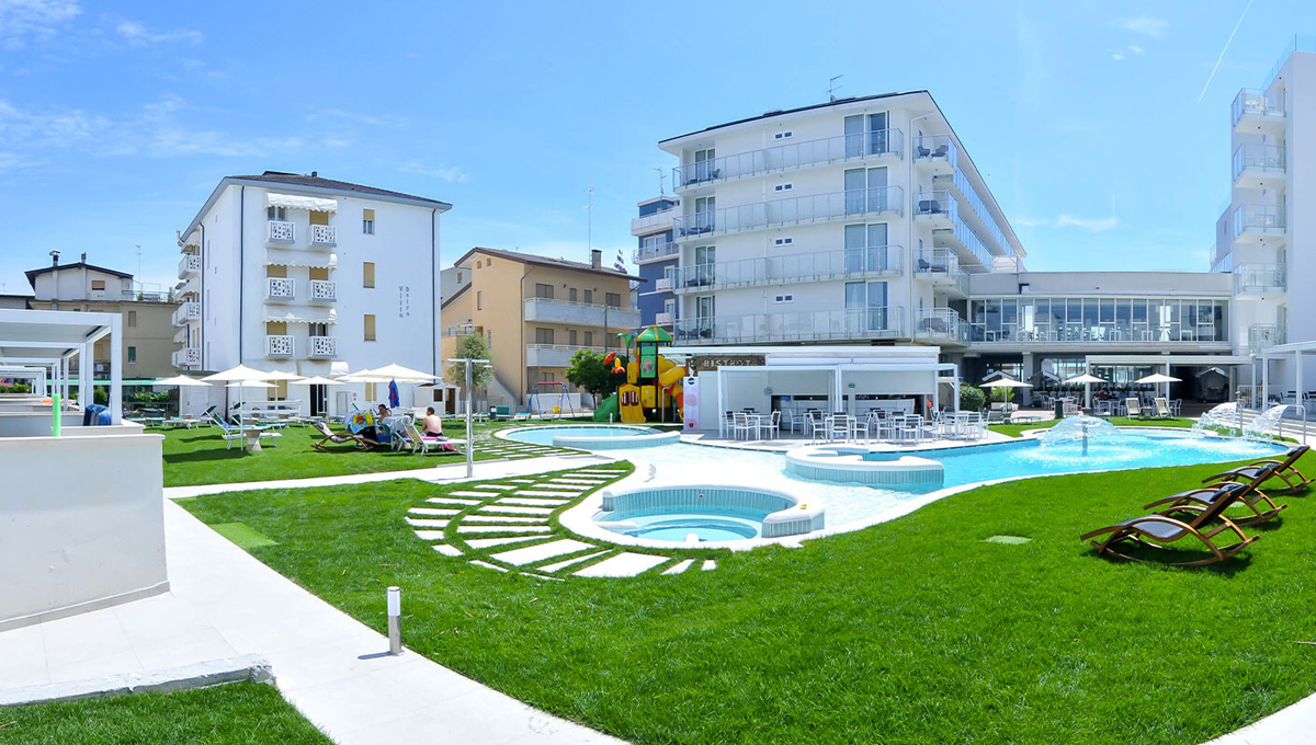 nietypowy kształt basenu zewnętrznego z brodzikiem dla dzieci o powierzchni 130 m², taras słoneczny z leżakami i parasolami, centrum fitness/wellness* o powierzchni 200 m² z małym krytym basenem, sauną, łaźnią turecką, ścieżką Kneippa i pokojem relaksacyjnym (dla osób powyżej 16 roku życia), wypożyczalnia rowerów, tenis stołowy; serwis plażowy* (1 parasol i 2 leżaki)