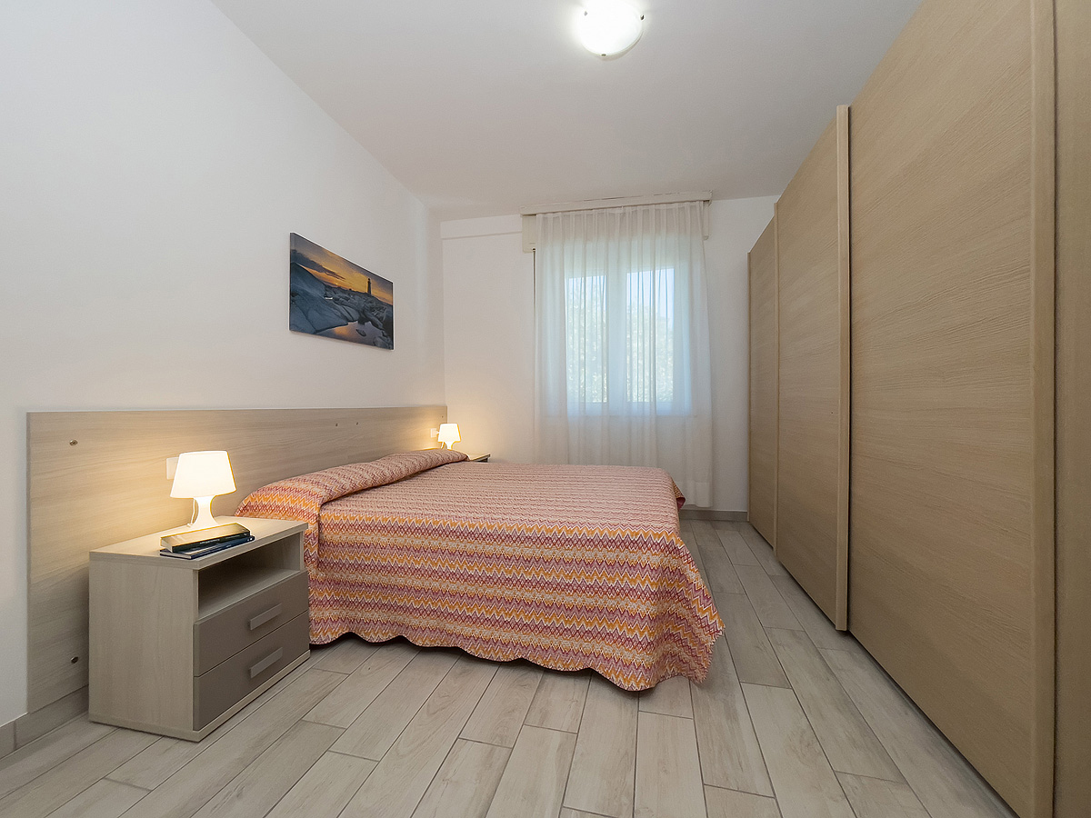 50 m² - 1 sypialnia z łóżkiem małżeńskim i 1 łóżkiem pojedynczym, pokój dzienny z aneksem kuchennym i rozkładaną kanapą dla 2 osób, łazienka z prysznicem, balkon; dla typu bilo 5M - balkon z bezpośrednim lub bocznym widokiem na morze