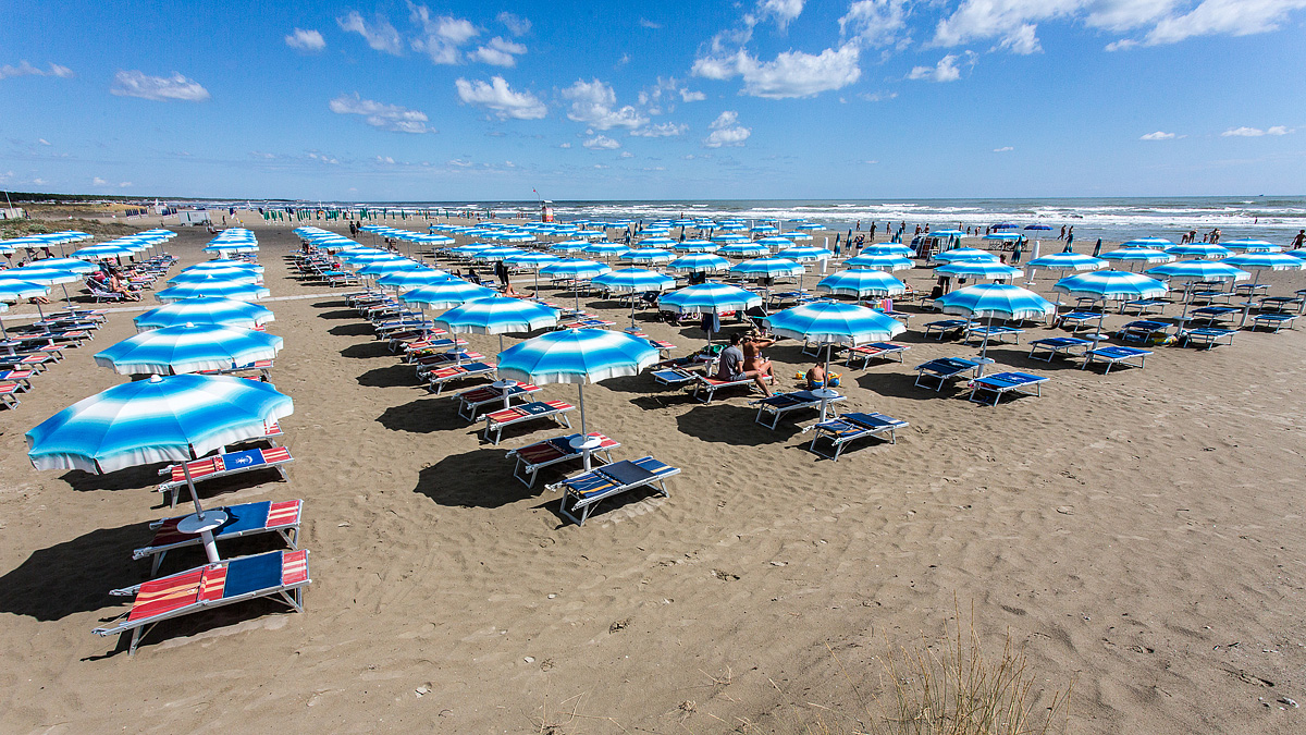 Plaże mają wiele kilometrów długości i stopniowo przechodzą z jednego sąsiedniego kurortu w drugi; rozdzielają je jedynie ujścia rzek i kanałów. Ze względu na bardzo drobny piasek, woda w pobliżu brzegu często wydaje się mętna, lecz nie jest zanieczyszczona. Maleńkie cząsteczki piasku są podatne na ruch przy nawet najmniejszym ruchu morza. Plaże składają się wyłącznie z drobnego piasku i osiągają szerokość do 100 metrów. W niektórych miejscach gaje sosnowe oddzielają obszary mieszkalne. Na całej swojej długości plaże charakteryzują się wyjątkowo łagodnym i bezpiecznym wejściem do morza, dzięki czemu są idealne dla małych dzieci i osób nieumiejących pływać. W niektórych miejscach można pływać nawet 100 metrów od brzegu; ku południu głębokość i zasolenie morza wzrasta. Morze w tym miejscu jest zazwyczaj bardzo spokojne, nie nadaje się do nurkowania i nie występują tu niebezpieczne zwierzęta. Znajdują się tu zarówno plaże publiczne, jak i szereg plaż prywatnych (płatnych, z niską ceną jak na włoskie standardy), z obsługą i sprzętem sportowym (boiska do gier, atrakcje dla dzieci, łódki, rowery wodne, programy animacyjne, ratownicy, bary). Przeważnie na obrzeżach plaż płatnych znajdują się te bezpłatne, na które można zabrać ze sobą cokolwiek się chce, ale plaże nie są utrzymywane w dobrym stanie i nie mają sanitariatów.Na terenie ośrodka znajdują się również prywatne plaże, na których mogą przebywać psy, oraz plaże publiczne poza miejscowością. Kąpiel psów w morzu jest zabroniona na terenie całego regionu Emilia-Romania, z pewnymi wyjątkami (dokładnie określonymi w rozporządzeniu władz lokalnych).
