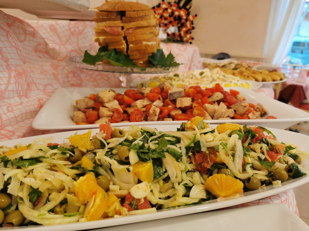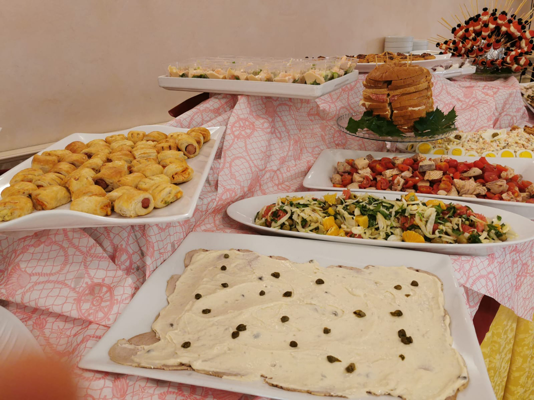 obiad - zwykle w formie bufetu, nieograniczona ilość wody z kranu, wina i napojów bezalkoholowych; inne napoje za opłatą