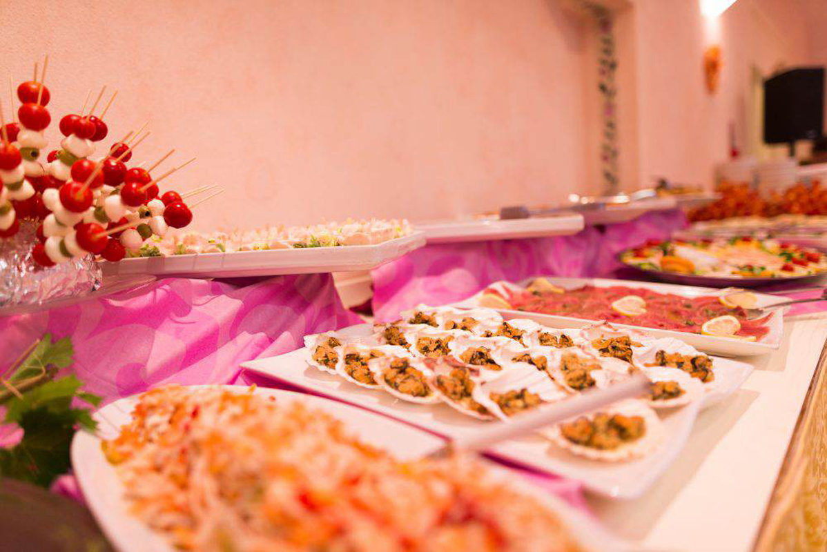 kolacja - zwykle w formie bufetu, nieograniczona ilość wody z kranu, wina i napojów bezalkoholowych; inne napoje za opłatą