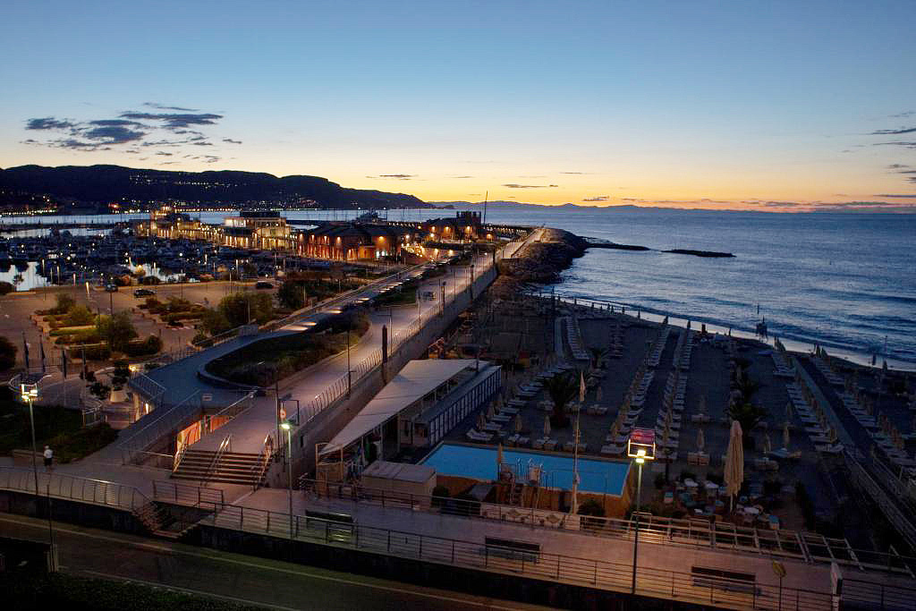 Loano, centrum - 200 m, plaża / gruboziarnista, miejscami z drobnymi kamieniami, z łagodnie nachylonym wejściem do morza - 20 m