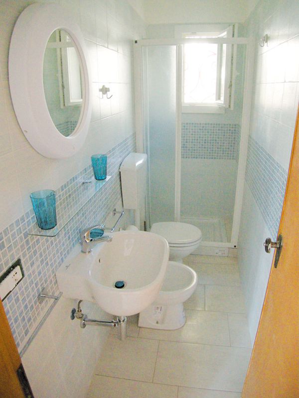 50 m² - 1 sypialnia z łóżkiem małżeńskim, 1 sypialnia z łóżkiem małżeńskim lub 2 łóżkami pojedynczymi i ewentualnie 1 łóżkiem pojedynczym, salon z aneksem kuchennym i ewentualnie rozkładaną sofą dla 1 osoby, łazienka z prysznicem, balkon lub taras lub taras z ogródkiem przed domem