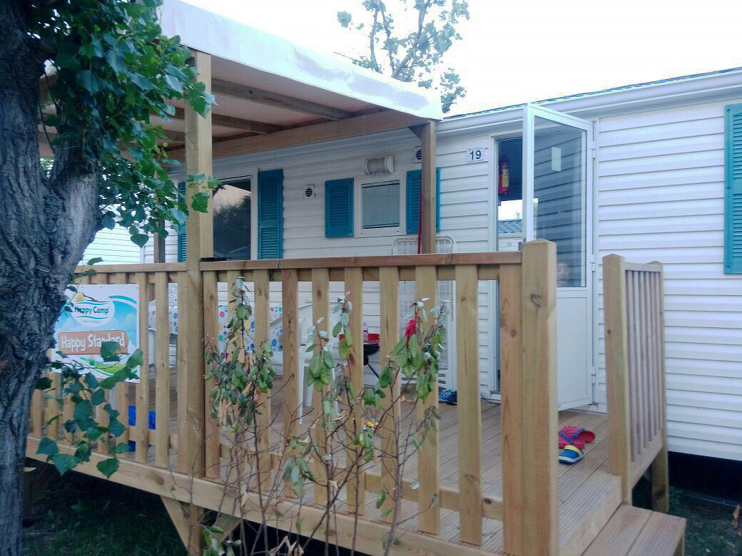 mobilhome Happy easy – klimatyzacja*, mały grill elektryczny; mobilhome Happy plus – klimatyzacja*, mały grill elektryczny, ekspres do kawy i kuchenka mikrofalowa; mobilhome Happy superior – klimatyzacja*, mały grill elektryczny, ekspres do kawy, kuchenka mikrofalowa, suszarka do włosów.