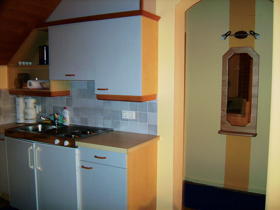 1. piętro apartamentu: sypialnia z łożkiem małżeńskim, pokój dzienny z aneksem kuchennym, łazienka, oddzielne WC, balkon;2. piętro apartament wejście po kręconych schodach: sypialnia z 4 pojedyńczymi łóżkami.