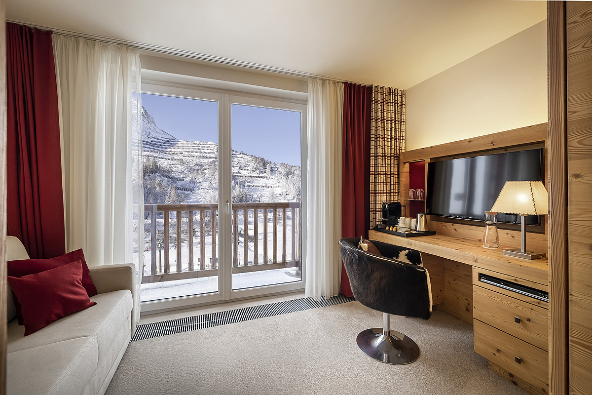 TV sat., radio, telefon, suszarka do włosów, sejf, minibar*, wi-fi, szlafroki i ręczniki do wellness, ekspres do kawy Nespresso i zestaw do przygotowania herbaty.