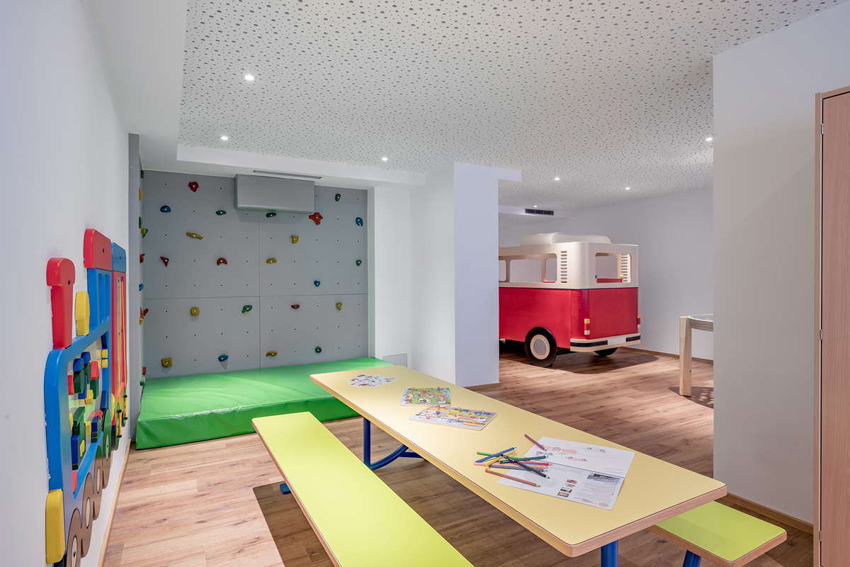 recepcja / lobby, restauracja zarezerwowana dla gości hotelowych, restauracja gourmet a la carte*, bar, piwniczka z winami, salonik, kącik dla dzieci, taras słoneczny z miejscami do siedzenia, łącze internetowe Wi-Fi, przechowalnia sprzętu narciarskiego i butów narciarskich, winda, zarezerwowane miejsce parkingowe, garaż