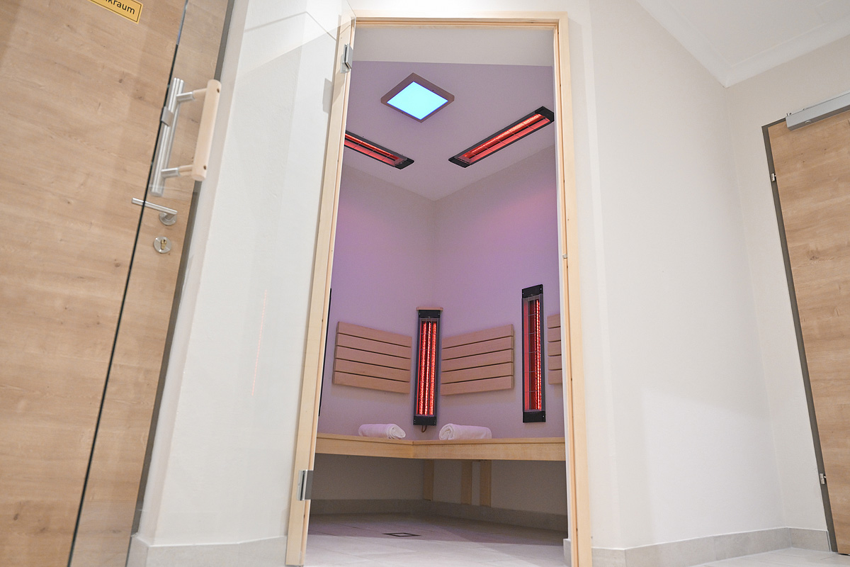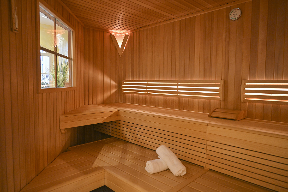 basen 12 x 6 m, sauna fińska#, biosauna#, łaźnia parowa#, caldarium#, ścieżka Kneippa#, kabina na podczerwień#, kącik relaksacyjny z leżakami#, masaże*, siłownia, piłkarzyki*; usługi oznaczone # są dostępne dla dzieci od 14 lat