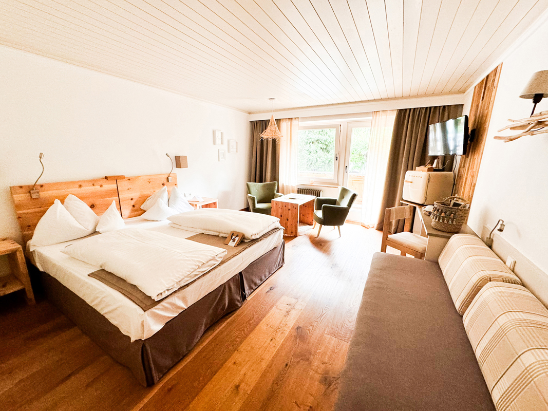 25-35 m² - elegancko urządzony, rustykalny pokój z łóżkiem małżeńskim i ewentualnie rozkładaną sofą dla 1 dziecka do lat 18, łazienka z prysznicem lub wanną, balkon