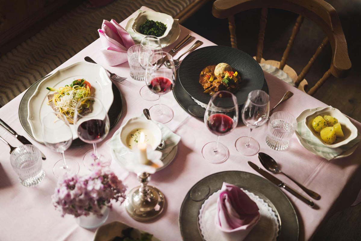 serwowane 4-daniowe menu z wyborem dań głównych z dodatkiem, podawana przystawka lub zupa, podawany deser, bufet sałatkowy, napoje za opłatą; 2x tygodniowe przystawki i desery w formie bufetu