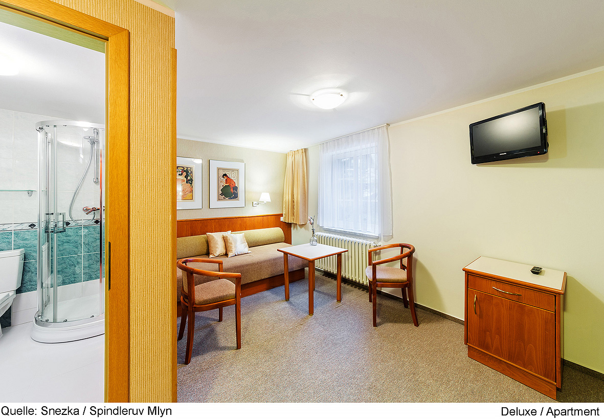 Szpindlerowy Młyn, centrum – 700 m, Aquapark (Resort Špindl) – 1 km, ośrodek narciarski Szpindlerowy Młyn (Hromovka) – 1,4 km, skibus (Hromovka) – 1,4 km, ośrodek narciarski Szpindlerowy Młyn (Svatý Petr) – 1,8 km, Szpindlerów Ośrodek narciarski Mlýn (Medvědín) – 3,3 km