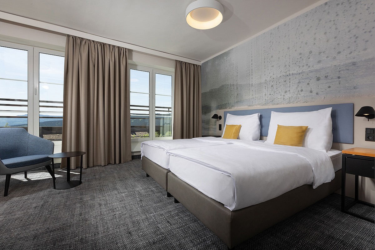 Executive 2 - 25 m² - pokój z łóżkiem małżeńskim lub 2 pojedyńczymi łóżkami, łazienka, zwykle balkon z widokiem na okolicę