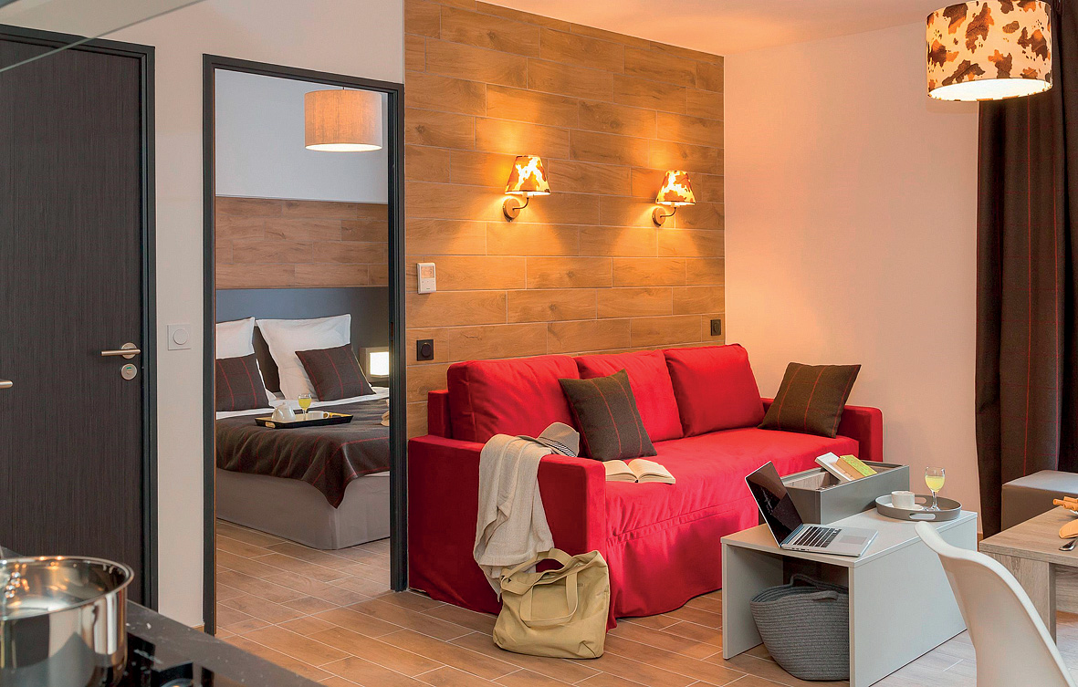 56 m² - 1 sypialnia z łóżkiem małżeńskim, 1 sypialnia z 2 łóżkami pojedynczymi, salon z aneksem kuchennym i rozkładaną sofą dla 2 osób (możliwa również sofa typu „szuflada”) lub 1 łóżkiem pojedynczym, 2 łazienki (1 z prysznicem, 1 z wanną), balkon lub taras