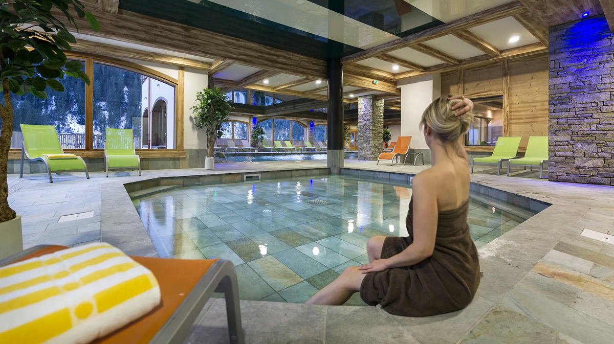 Centre O des Cimes - basen# 15 x 5 m z leżakami, brodzik#, jacuzzi#, sauna fińska#, łąźnia parowa#, multifunkcyjnay prysznic#, masaże*, usługi kosmetyczne*, wielka siłownia#;