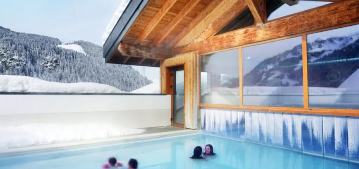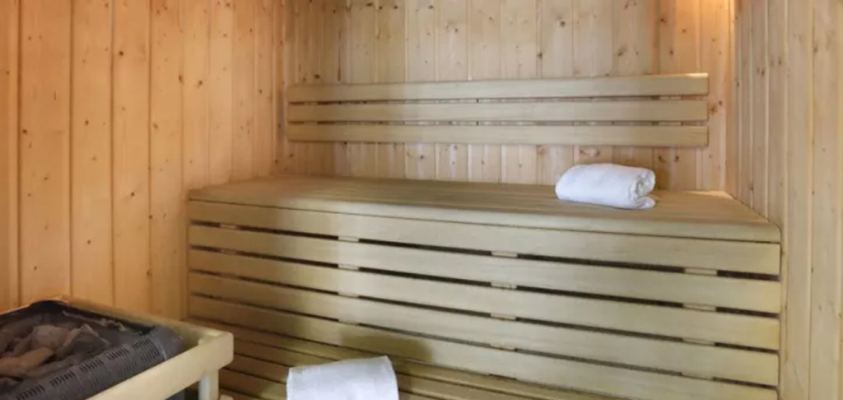 podgrzewany basen (w połowie kryty, w połowie odkryty), jacuzzi, sauna fińska