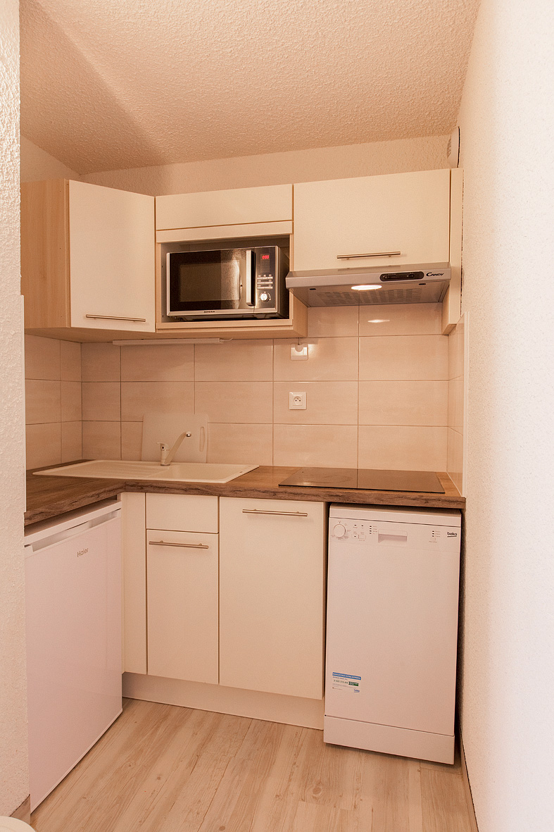 30 m² - 1 sypialnia z łóżkiem małżeńskim, pokój dzienny z aneksem kuchennym i kanapą dla 1 osoby, kabina i pokój wejściowy z łóżkiem piętrowym, zaplecze socjalne, balkon
