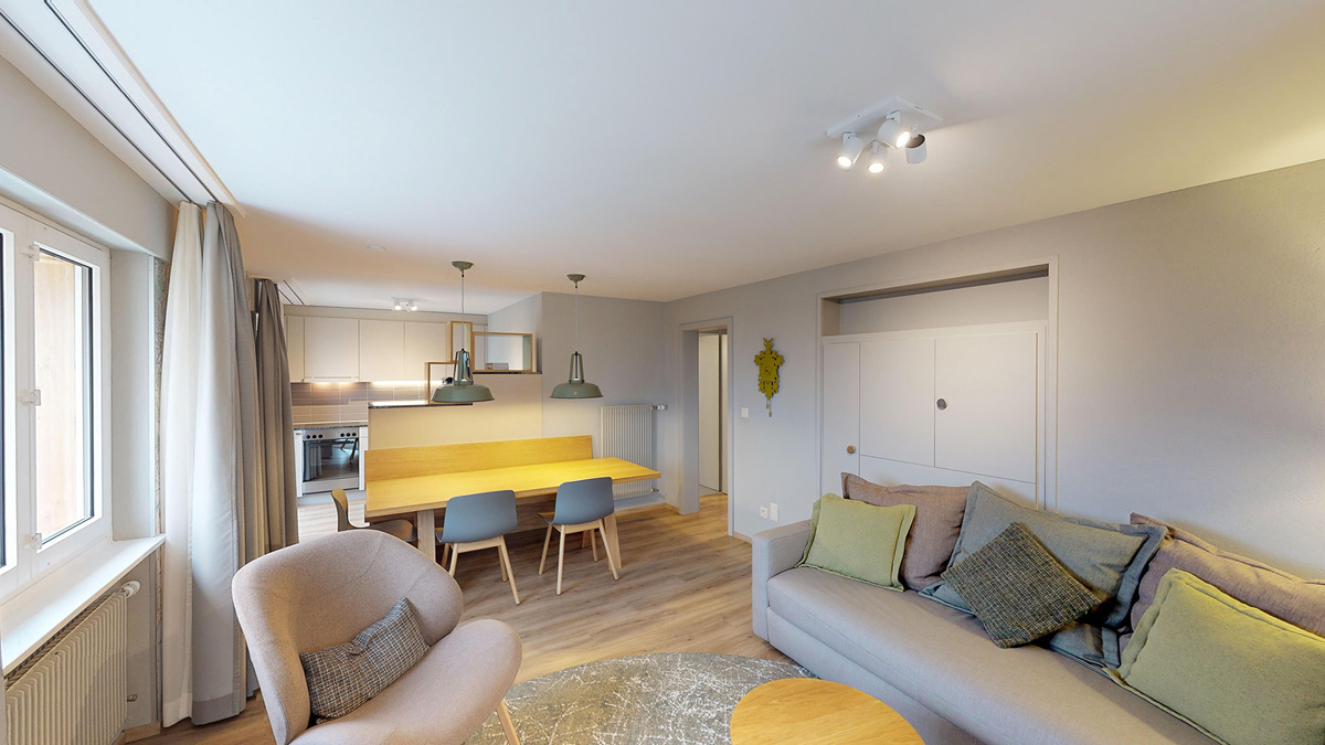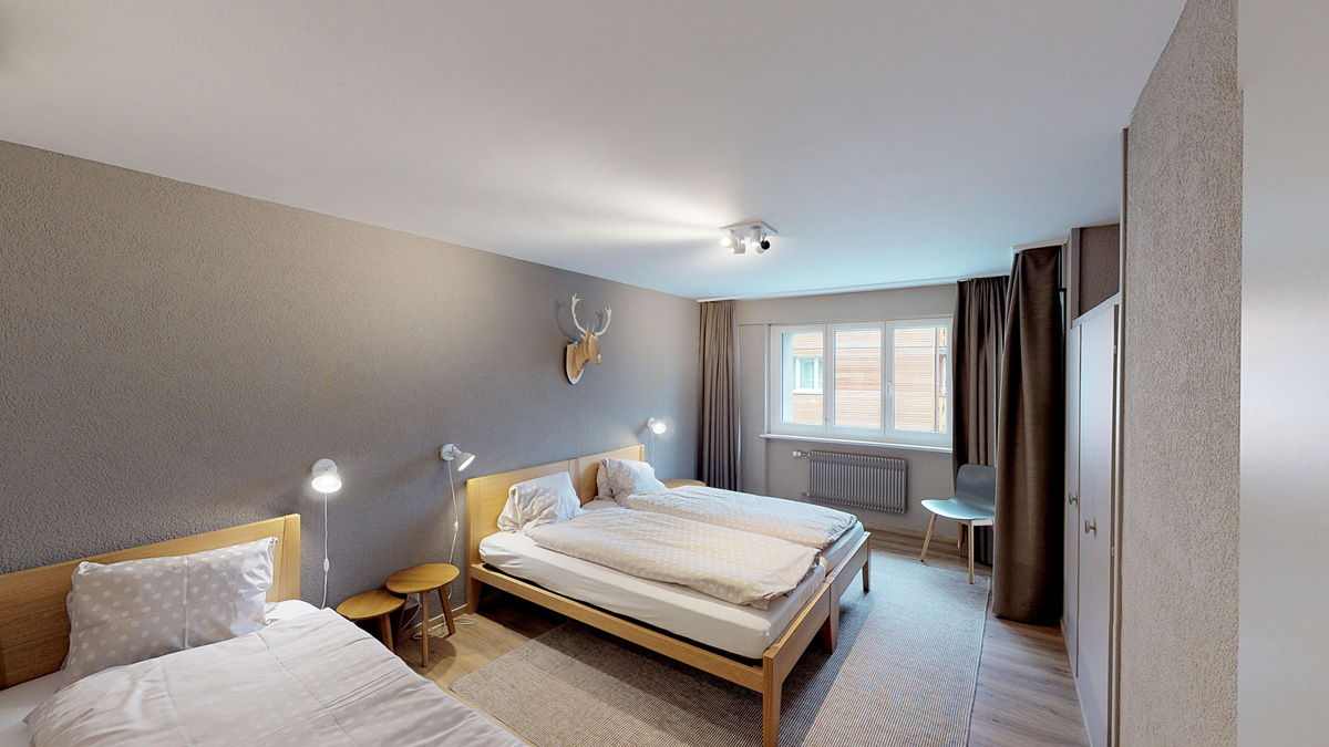 95 do 97 m² – 3 sypialnie z 2 pojedynczymi łóżkami, salon z aneksem kuchennym i rozkładaną sofą dla 2 osób, łazienka, osobna toaleta, balkon; możliwy wariant z 1 sypialnią z 3 pojedynczymi łóżkami, 1 sypialnią z 2 pojedynczymi łóżkami i 1 sypialnią z 1 pojedynczym łóżkiem