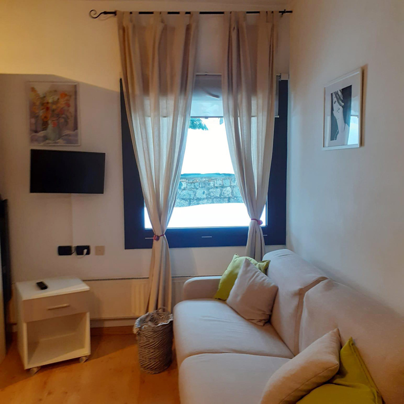 28m² - pokój dzienny z aneksem kuchennym, łóżkiem małżeńskim z osobnymi łóżkami i rozkładaną kanapą dla 2 osób, łazienka, taras z 50%; odpowiedni dla 2 dorosłych i 2 dzieci