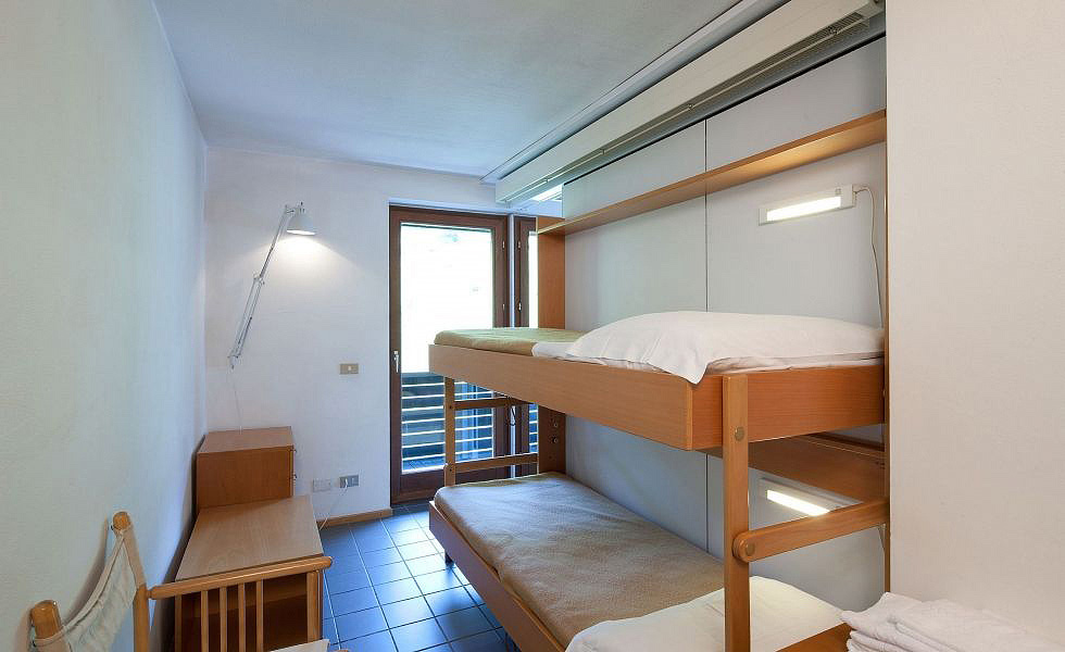 106 m² - 1. piętro apartamentu - 1 sypialnia z 3 szafowymi łóżkami piętrowymi, balkon; 2 piętro apartamentu - pokój dzienny z aneksem kuchennym i rozkładaną kanapą dla 2 osób, łazienka, balkon; 3. piętro apartamentu - 2 sypialnie z łóżkiem małżeńskim, 1 sypialnia z 1 lub 2 łóżkami pojedynczymi (na poddaszu), łazienka z wanną, balkon