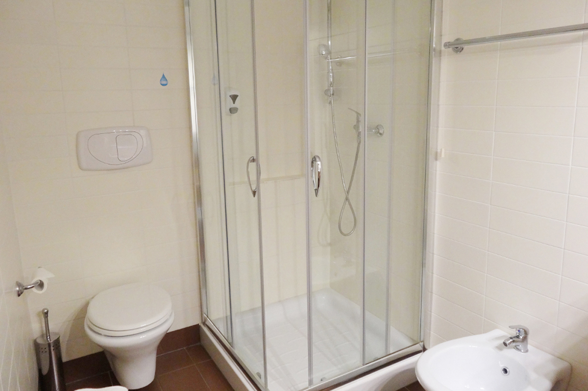 pokój z 1 łóżkiem pojedynczym, łazienka z prysznicem