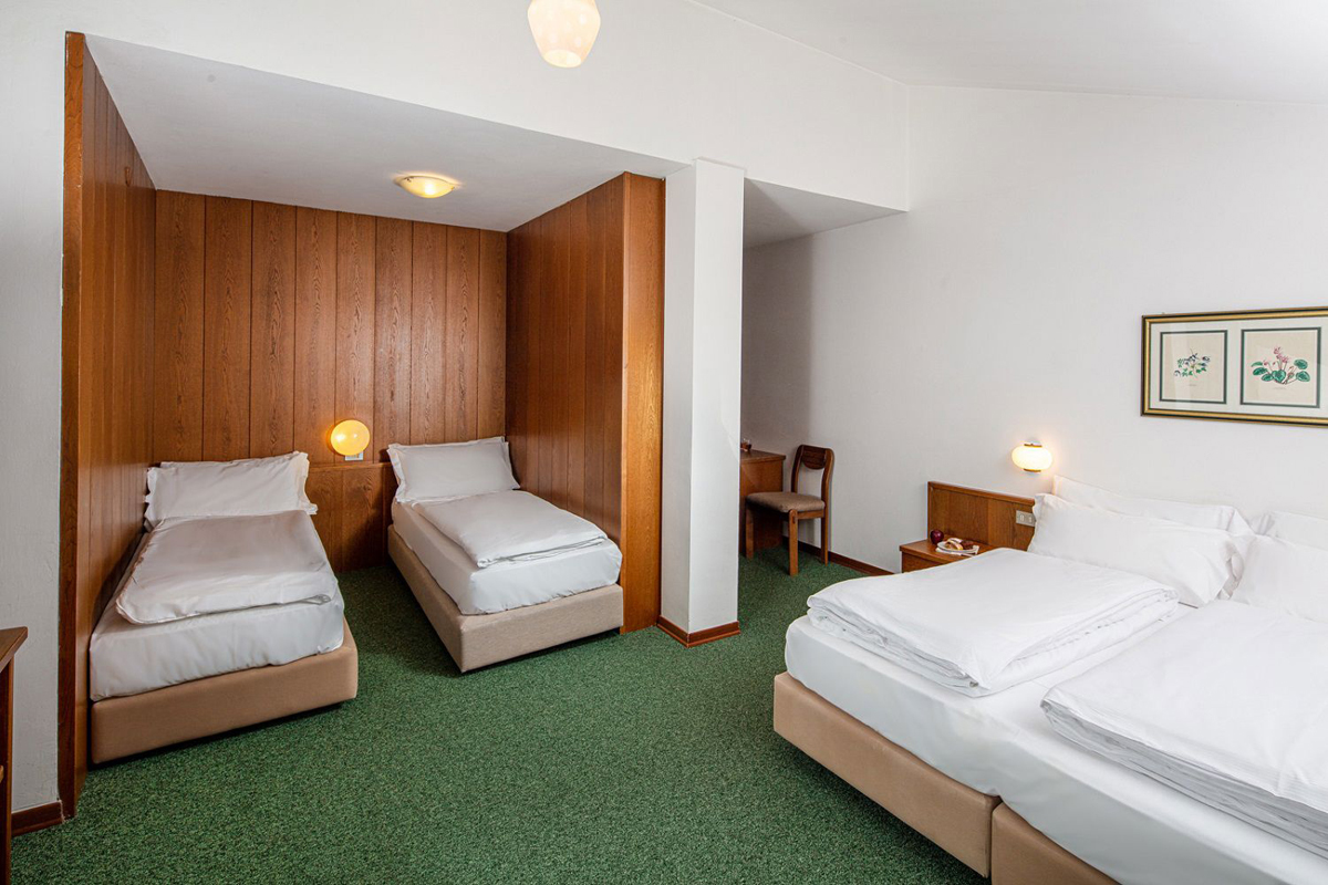 Family Superior 4 - przestronny pokój z łóżkiem małżeńskim i 2 pojedynczymi łóżkami lub rozkładaną sofą dla 2 osób, łazienka z prysznicem; pokoje po całkowitym remoncie