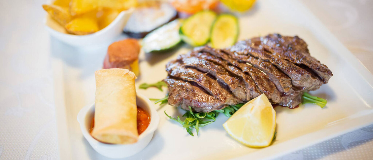 serwowane menu z wyborem 2-3 zimnych lub ciepłych przystawek i 2-3 dań głównych z dodatkiem, bufet sałatkowy, deser serwowany, napoje za opłatą; typowa kolacja raz w tygodniu