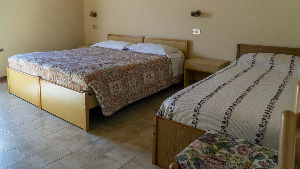 quadri 6/7 - 2 sypialnie z łóżkiem małżeńskim lub 2 łóżkami pojedynczymi, 1 sypialnia z 3 łóżkami pojedynczymi, pokój dzienny z aneksem kuchennym, łazienka z prysznicem lub wanną, balkon; apartamenty znajdują się na 2. i 3. piętrze (poddasze)