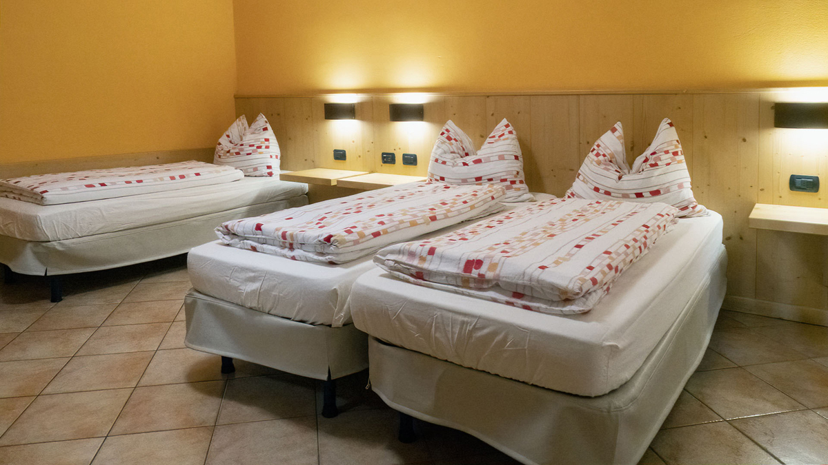 1 sypialnia z łóżkiem małżeńskim lub 2 pojedynczymi łóżkami, 1 sypialnia z 3 pojedynczymi łóżkami, pokój dzienny z aneksem kuchennym, łazienka z prysznicem; apartament znajduje się na parterze
